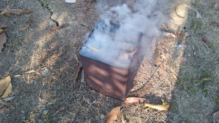 ของที่ใช้อยู่ก็หมดสภาพแระตอนนี้ต้องเผาทุกวันข้อดีของการเผาถ่านคือควันได้กระจายไปไล่แมลง