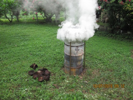 ยังไงงานเผาถ่านก็ต้องดำเนินไปเพราะว่ากะลาชุดก่อนเป็นแหล่งเพาะพันธ์ยุงลาย ฝนตกก็ต้องทำที่กันฝนให้มันหน่อย