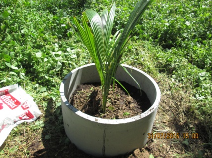 คราวที่แล้วมันตายหมดแล้งจัดต้องปลูกในวงรองเพื่อทดลองว่ามันจะรอดไหมงานนี้ นำพลาสติกรองเจาะรูตามความคิดว่ามันน่าจะชะลอน้ำในดินได้