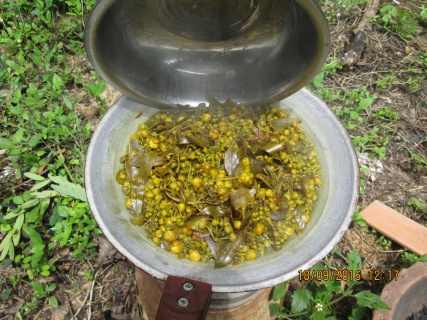 ตัดแล้วจะทิ้ง ดอกขี้เหล็กก็น่าเสียดาย ต้องน้ำมาต้มกับใบอ่อน กลับบ้านจะได้มีแกงขี้เหล็กกินแระแต่แม่ครัวหนีเที่ยว (ป้าอ้อไปเที่ยวบ้านสวนพอเพียง )
