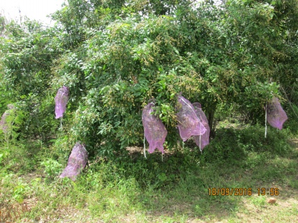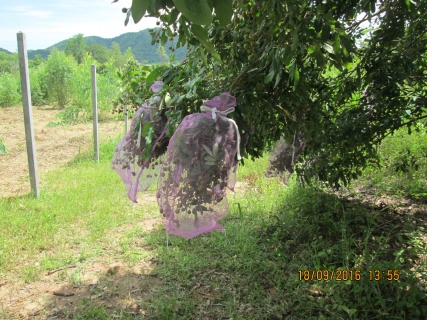 ห่อได้บางส่วนนะ เพราะออกลูกเยอะมากห่อได้แต่กิ่งต่ำๆสูงมากก็ห่อไม่ถึง ไปซื้อเสารั้วแต่ไม่ได้เอาบันไดไปด้วยเลยปืนไม่ถึง