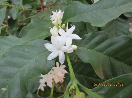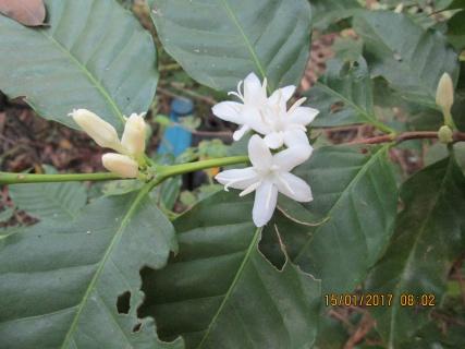 วันนี้ถึงสวนเร็วมากเวลาประมาณ 07.10 อากาศยามเช้ากำลังดีมากเลย มาถึงสวนแปลกใจมากที่ต้นกาแฟออกดอกทุกต้นเลยเหมือนนัดกันมาเลยปีนี้คงได้หลายเมล็ดนะ เป็นพันธ์ อาราบิก้า ส่วนเรื่องงานที่ต้องทำก่อสร้าง สร้างผลงาน วันนี้มีงานที่ไม่ได้เกี่ยวกับการทำสวนเลย มาทำ แท่านวางโหลปลากัด และงานไฟฟ้า มาชมผลงานต่อกันครับ