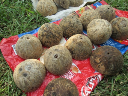 วันนี้ตามที่จั่วหัวไว้เลยงานกะลาล้วนๆเลย เพราะมีลูกค้าสั่งกะลา 30 ซีก เอากะลาตัวเมียด้วยนะสมัยนี้กะลาผ่าซีกก็หายากแล้วเพราะ ใช้เครื่องขูดมะพร้าวกันหมดแล้ว วันนี้มีสามอย่างที่ต้องทำ คือ ตัดท่อนมัน 100 ท่อน เกลากะลา 30 อัน เก็บไมยราบ ครึ่งกิโลกรัม เป็นงานสวนทั้งนั้นอันนี้เป็นงานสวนจริงๆๆเพราะค้าขาย ของเกษตรกรรม