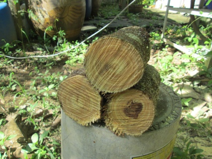 ตอนนี้เลื่อยไว้ก่อนเอามาทำถ่านท่าทางจะดีนะมันมีแก่นเหมือนกันนะไม่ใช่ว่าไม่แข็ง