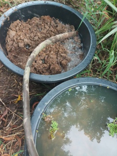 เอาแหนแดงใส่ไม่ต้องมากเพราะไม่นานก็จะขยายตัวออกไปมากเต็มกะละมัง