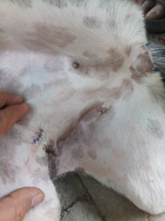ภาระกิจต่อมาก็ตัดไหมหมาที่ทำหมันมาแล้ว สองอาทิตย์ ต้องตัดเองเพราะร้านหมอไกลมาก