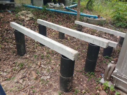 ลองวางดูเฉยๆ ยังไม่ได้ยึดอะไรยังไม่ได้เทปูน ทำอะไรจะเล็งก่อนว่าสูงเกินไปไหมสำหรับเสาขนาดนี้ แต่ดูแล้วไม่น่าจะสูงมากมายอะไรนะ