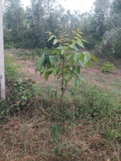 มะฮอกกานี แนวรั้ว ก็งามดีนะ แต่หลายต้นไม่รอด ต้องซ่อมแล้ว แต่น่าจะเป็นช่วงฝนลงหนักหน่อย ตอนนี้ดินที่เพชร เเข็งมาก