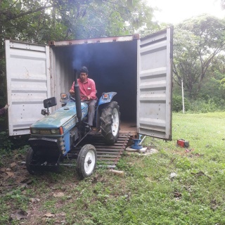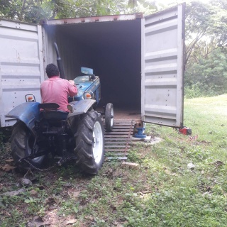 จอดรถไถไว้ประมาณ 3 สัปดาห์ได้ เปิดฝากระโปรงดู เจอใบมะม่วงแห้งเตรียมทำลังแล้วหยิบออกดีที่ยังไม่มีร่องรอยการกัดสายไฟ โชคดีไป เสริมทางขึ้นให้แข็งแรงและเราต้องตอกหมุดเพื่อไม่ให้แผงทางขึ้นถอยออกเป็นการป้องกัน เผื่อเวลาขึ้นแล้ว ตู้ถอย