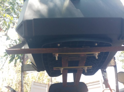 เมื่องานไถไม่ได้จำกัดแค่เรื่องที่ไถดินแต่รวมไปถึงการยึดสกรู การถอดอะไหลหลายอย่างรถไถต้องมีกล่องใส่เครื่องมือละ ไอเดียร์บรรเจิดเลยไปเห็นกล้องท้ายมอเตอร์ไซด์เหมาะมาก ก็จัดไป1 กล่องเอามาติดตั้ง ต้องทำที่วางรับกล่องให้สวยงามเหมาะกับการใช้งาน