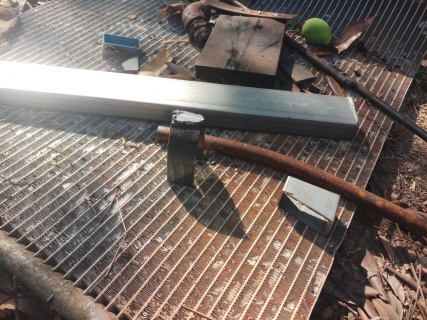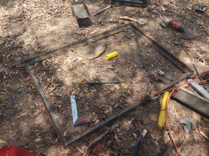 ตัดเหล็กฉากทำพื้นรถ สักหน่อยซื้อล้อมาแล้วต้องทำรถสำหรับให้รถไถลากเพื่องานบรรทุกจะสะดวกขึ้น แต่ได้แค่พื้น 555 เวลมีน้อยจัด