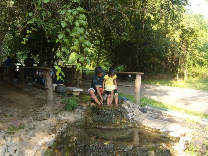 พาไปน้ำพุร้อนครับไปแช่เท้า นำ้ในบ่อพร่องไปเยอะครับ เพราะคนกรุงเทพหนีไปเที่ยวกันเยอะพอควร หนีน้ำท่วมไปแช่น้ำพุอะ