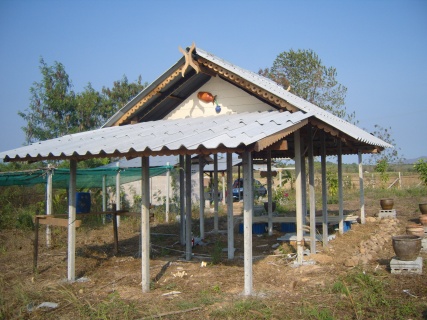 มุงหลังคาเสร็จแล้วครับเหลือแต่ข้างฝาละ งานี้ได้ทำงานในร่มละ