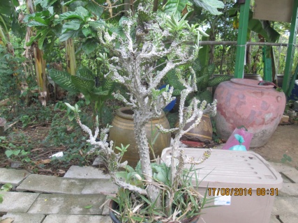 ซื้อต้นโมกมาต้นวันที่ 12 สิงหา ต้นละ 100 บาทซื้อมา2 ต้นคิดว่าไม่คุ้มที่ขนมาแถวนี้อาจจะถูกกว่าปากน้ำ ที่ไหนได้ออกไปถามร้านต้นไม้ ต้นละ 150 บาท แหมเสียดายซื้อที่ปากน้ำเยอะๆซะก็ดีแล้ว555