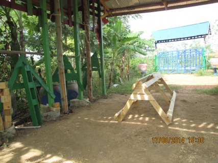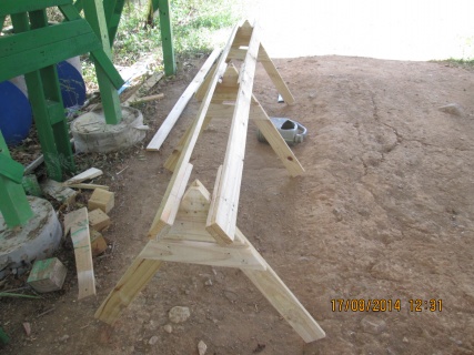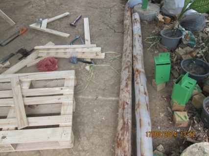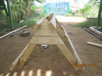 เริ่มทำแต่เช้าเลยนะครับ ได้ไม้จากที่เลาะพาเลสคราวที่แล้วมาประกอบต่อกันต้องทำแบบน็อคดาวน์เพราะงานนี้อยู่ที่สูงต้องทำให้ง่ายที่สุดและเบาที่สุด