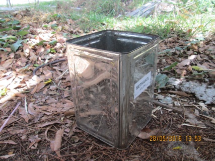 ขอปี๊บที่ร้านขายของเก่าเอาไปตัดปากให้เรียบร้อยเตรียมเผาถ่านกะลา