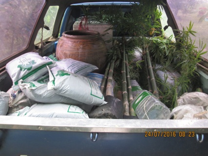 ใครจะเรียกว่าไผ่อะไรผมไม่รู้ผมรู้แต่ว่าถ้าลำเล็กกว่าไม้ไผ่ป่าผมเรียกว่าไผ่รวกหมด(ใครอย่านำไปอ้างอิงนะ 5555 ) ที่นำมาปลูกคราวนี้ซื้อมาจากร้านต้นไม้ดอกไม้ประดับเนี่ยแหละ ไม่รู้หรอกว่าเรียกชื่อเป็นทางการว่าอะไรแต่เคยลองทานหน่อแล้วอร่อยใช้ได้มาดูกันดีกว่าว่าปลูกอะไรบ้างหน้าฝนนี้