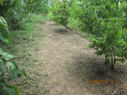 ถางหญ้ารกๆที่โคนต้นน้อยหน่าเตียนเลย