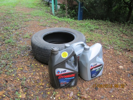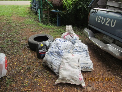 คราวนี้เอาน้ำมันเครื่องเก่ามาด้วยเพราะต้องเอามาราดปลวกบ้างทาไม้เพื่อไม่ให้ผุบ้างนี่แหละที่บอกว่ามันเกิดจากการสังเกต ประโยชน์ทั้งนั้น กะลาด้วยมาเผ่าถ่านเหมือนเดิม ต่อไปอาจจะต้องใช้ถ่านในการปั้นดินเผาเพื่อทำงานต่างๆ