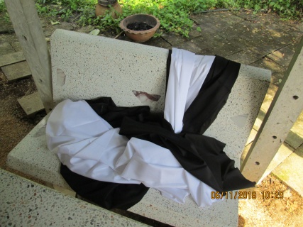 ซื้อผ้ามาจากที่โรงงาน มาประมาณชิ้นละ 3 เมตรมาถึงสวนเอาหละซิคราวนี้จะทำยังไงดีหว่าเราก็ไม่ชำนาญเรื่องสวยๆงามๆพวกนี้ซะด้วย เอาหละว่าไหนๆก็ไหนๆๆแระจัดไปตามความสามารถ