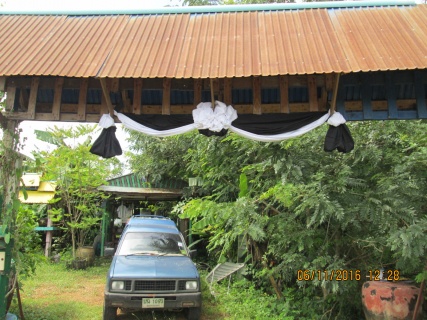 นี่คงเป็นประโยชน์ของการมีซุ้มประตูเพราะปีให็มาไว้ประดับได้ตอนนี้ก็ไว้อาลัยในหลวงของเรา