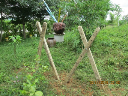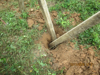 ไอ้เราก็ชอบขุดหลุมปักเสาอะนะ 555อยากทำฉากบังสายตาคนที่มองเข้ามาให้มีลุ้นนิดนึง ขุดเสาเก่ามาทำปักเอาน็อตร้อยผ่านให้เป็นกากบาท