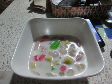 กลางคืนพอดีกลับมาบ่ายแล้วไม่นานก็เย็นเตรียมอาหารของหวานอน