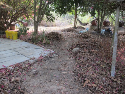 กวาดใบไม้แต่เช้าไม่ใช่น้อยเลยนะที่สวนใบมะม่วงดอกเฟืองฟ้าเยอะมากต้องหมักทำปุ๋ยดีกว่าหมักกับกากกาแฟ