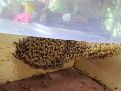 รังทำจากบ้านปากน้ำเอามาอีกสองรังเราต้องมาเตรียมไว้สำหรับการแยกรังขอให้เลยหน้าฝนไปก่อนค่อยแยกตอนนี้อาหารขาดแคลน