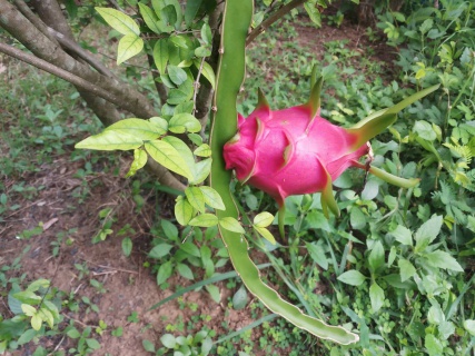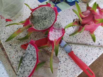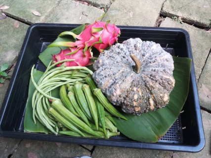 ผักผลไม้ปลอดสารพิษแน่นอนฟักทองนึ่งกับผลไม้แก้วมังกร