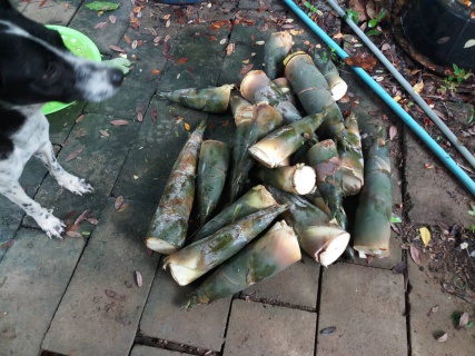 งานสวนก็ต้องดำเนินต่อไปครับเก็บหน่อไม้ไปขายและต้มที่บ้านปากน้ำ
