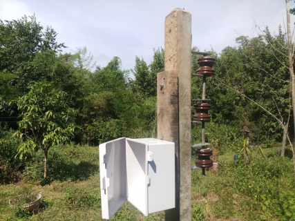 ต้องปักเสาและติดแร็กต้นหนึ่งตรงนี้เพื่อต่อสายมาเข้ากล่องกันน้ำ