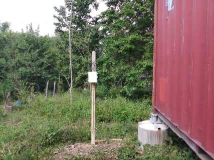 ดีที่มีสายเก่าเอามาต่อเข้ากล่องงานนี้ต้องใช้บันไดและต้องใช้แคล็มป์ยึดดีกว่าการต่อสายแบบอื่น
