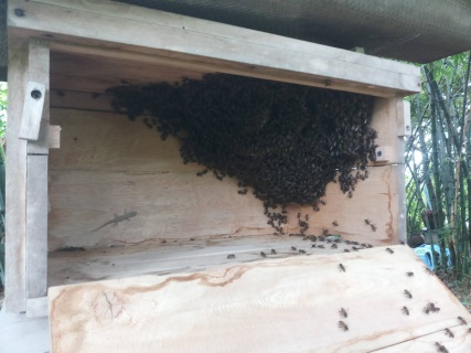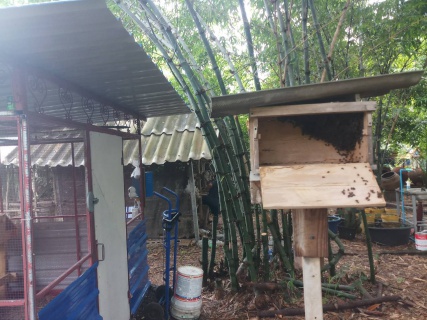 รังนี้ตรงกรงไก่เลยไม่กล้าเปิดเอาน้ำผึ้งกลัวจะเดินไปกรงไก่ไม่ได้แต่ตัวเยอะดีมาก