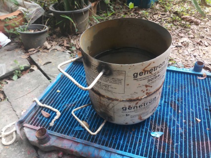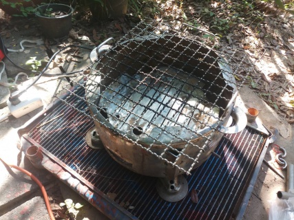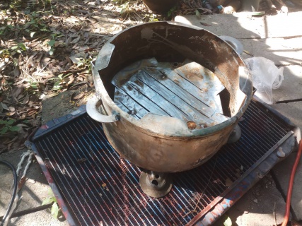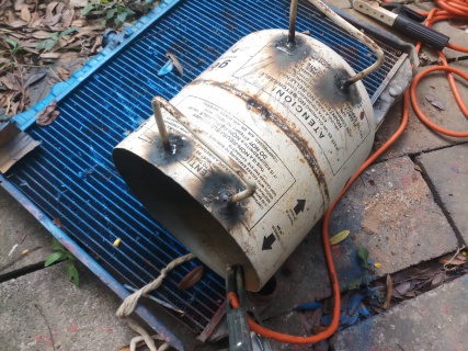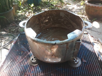 ถังน้ำสแตนเลสทิ้งแล้วแตกจากร้านของเก่าเอามาใส่ไอเดียร์เป็นเตาย่างของสบายเลย