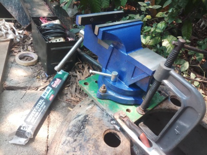 ตัวนี้ก็เอากลับปลดระวางปากกางานช่างฝีมือพื้นฐานของเด็กช่างสมัย ปวช เอามาใช้ที่สวนก็จับงานได้แต่ไม่ดีพอของใหญ่ทำยาก ดัดเหล็กหนาไม่ได้ สวนเราพัฒนาไปงานกว้างขึ้น เครื่องมือต้องปรับเปลี่ยน
