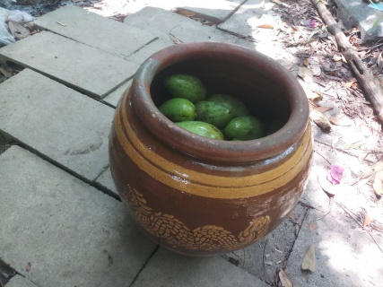 ดองใส่โอ่งที่ตั้งโชว์ต้มน้ำเกลือ แล้วหาอะไรกดให้มะม่วงจมน้ำไม่ไงั้นรากินแน่นอน การดองน้ำเกลือต้องทำอย่างที่ว่านี้ ให้มะม่วงจมน้ำ