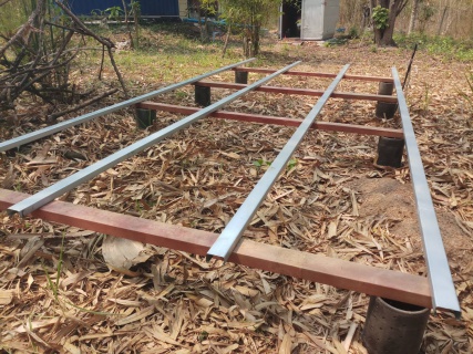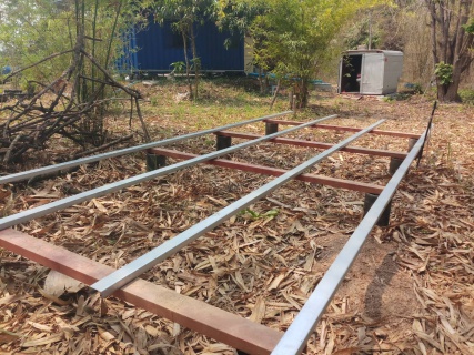 หาระดับไว้ก่อนหาแนวไว้แต่ยังไม่ได้ปรับระดับหรือยึดอะไรการทำงานมันยากตรงนี้เพราะที่ดินเราเป็นเนินลง