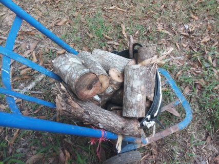 ได้อีกงานในการเผาถ่านได้กะลามะพร้าวมาพอดีแแล้วไม้ขี้เหล้กที่ตัดไว้ก็ได้เวลาที่ต้องย่อยแล้วเผารวมกันไปเลย จากต้นขี้เหล็กเพาะเมล็ดจนถึงสามารถนำมาเผาทำถ่านได้คนเราไม่ได้ต้องการอะไรมากกว่านี้