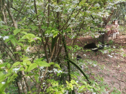 ดอกไม้เริ่มออกดอกโมกตรงนี้ปลูกมานานแล้วงามเวลาได้ฝนผีเสื้อก็มาตอมกัน