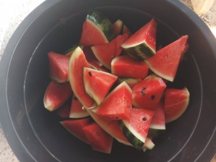 อาหารไก่เสริมอาหารด้วยแตงโมและผักต่างๆข้าวโพดด้วยแบ่งกันไป สำหรับไก่น้อย
