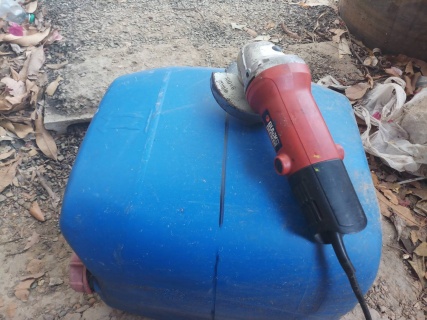 กว่าจะทำไฟแสงสว่างเสร็จก็ สายละ คราวนี้เลยงานไปเรื่อยเปื่อยเลย ตัดถังทำที่ใส่น้ำ ยกลำบากก็ต้องใส่หูทำไป