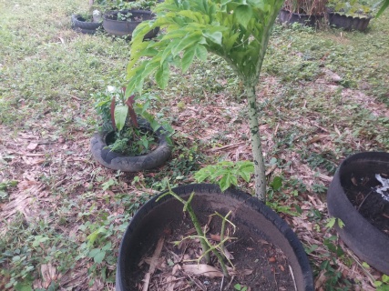 บุกต้นที่อยู่ในกระถางยาง คือบุกบ้านเหลือแต่ก้าน บุกที่ ใบสวยงามคือบุกคางคก ไม่มีแมลงตัวไหนกินเลย