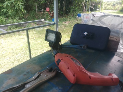 ไหนๆก็ต่อไฟฟ้ามาแล้วต้องทำงานต่อเลยมีนัดกับงานอีกอย่างเสริมหล่อให้รถไถ โดยใส่กระจกมองหลัง
