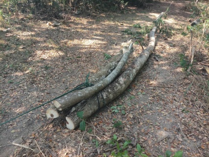 จะกี่ท่อนก็ลากได้สบายมากนี่ถ้าเป็นแรงงานคนอย่างน้อยต้องมี 2 คน เพราะกิ่งไม่ใช่เล็กๆ