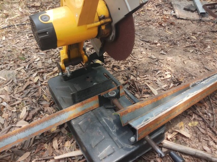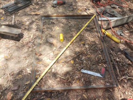 ตัดเหล็กฉากทำพื้นรถ สักหน่อยซื้อล้อมาแล้วต้องทำรถสำหรับให้รถไถลากเพื่องานบรรทุกจะสะดวกขึ้น แต่ได้แค่พื้น 555 เวลมีน้อยจัด