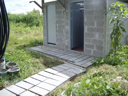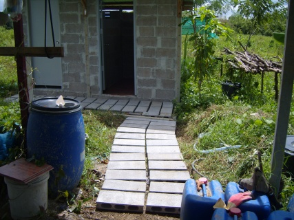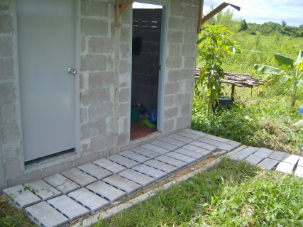 แล้วทำทางเดินเชื่อมต่อไปเพื่อสะดวกเวลาที่จะเดินไป พื้นห้องน้ำจะได้ไม่มีทรายเปรอะ