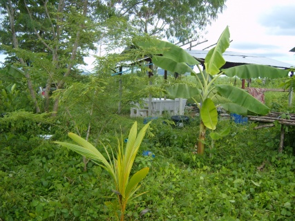 ที่ไหนมีต้นไม้ก็มีความชุ่มชื้นครับ รอบบ้านสวนถ้าต้นกล้วยโตก็จะร่มรื่นครับเอาแค่บริเวณบ้านให้น่าอยู่ก่อน ทั่วทั้งพื้นที่ทำไม่ไหวครับ เมื่อมีทุนก็ค่อยทำทั้งพื้นที่ ที่คุณพูนศักดิ์ ไม่นานก็ร่มรื่นครับเพราะ ปลูกไม้ป่าไว้เยอะ เจริญงอกงามดีไม่แพ้กัน ยามบ่ายมานั่งทานกาแฟแบบเย็นๆๆสบายๆๆที่บ้านสวนพชรได้แล้วครับยินดีต้อนรับ