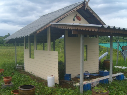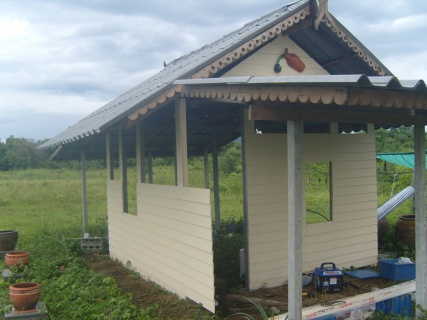 สัปดาห์นี้ไปกั้นฝาบ้านต่อครับ แต่ไม้ฝาหมดแล้วซื้อมาเพิ่ม อีก 4 มัด เป็นเงิน 1900 บาท ไปเอาเองคิดแผ่นละ 95 บาท กั้นไม่เสร็จเพราะฝนตกมาอย่างมากแรงมาก ได้งานน้อยครับแต่พืชก็ได้รับน้ำ อย่้างทั่วถึง เวลาตกก็ตกเอามากมายเวลาแล้งก็ไม่มีสักหยด