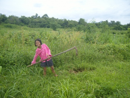 ดูท่าทางการยกจอบแล้ว คงต้องหาจอบเบอร์เล็กกว่าหน่อย จอบไม่เหมาะกับตัว หรือ ตัวไม่เหมาะกับจอบ555